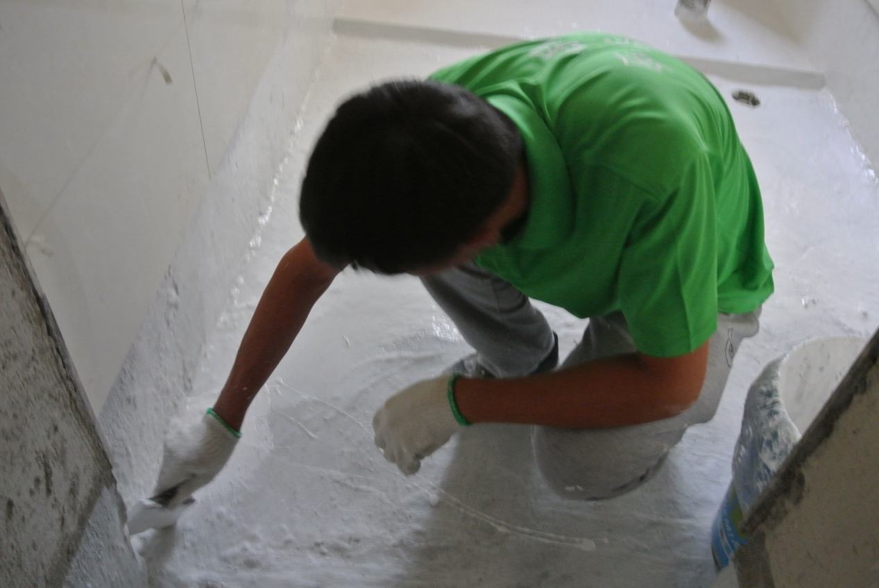 3、在施工前應(yīng)先將各個(gè)邊角部分和易漏部分先行施工,且順序是從地面往墻面延伸,目前防水層必須高于地面30cm,淋浴區(qū)的防水高度不得低于180cm,條件允許可直接做到頂部。