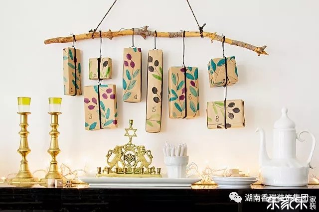 只需將帶有不同長度的緞帶的小紙袋裝入分支,并在每個袋子上貼上編號標簽即可。如果你愿意的話,用五顏六色的字符串或油漆裝飾分支,把它從地?;驂ι蠏炱饋?。